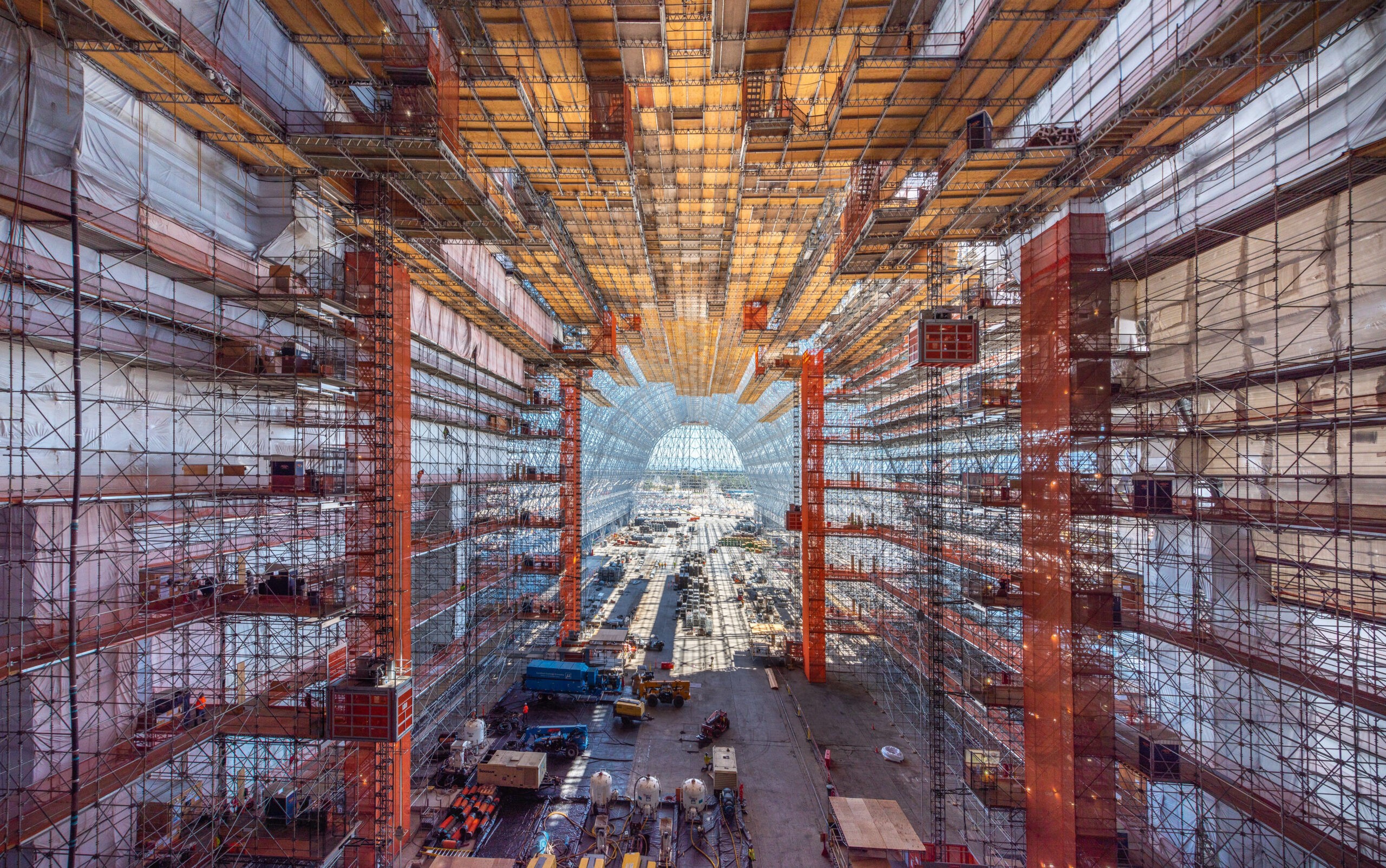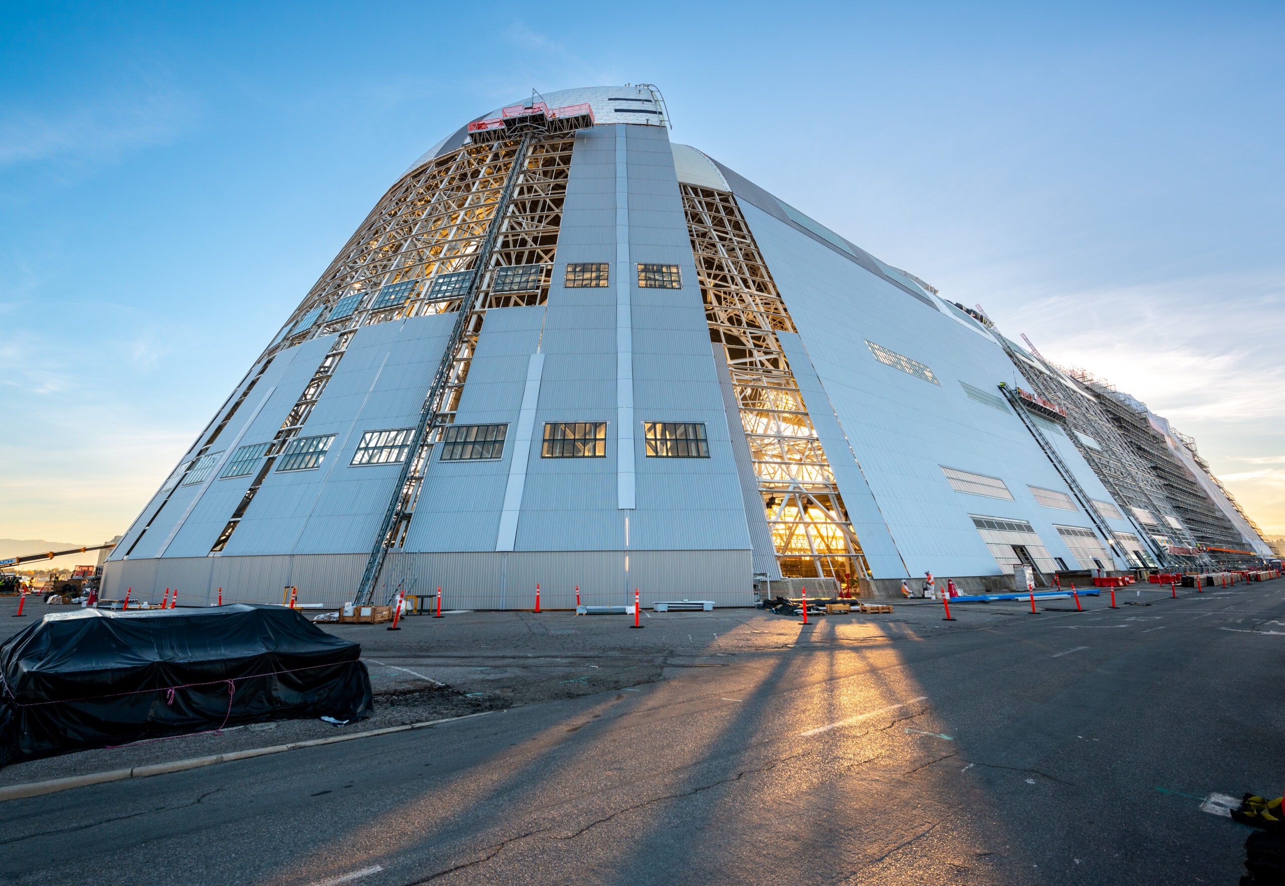 Hangar One, a historic landmark located in the Bay Area, was originally constructed over 90 years ago by the US Navy at the Moffet Federal Airfield. This impressive structure spans 1,133 feet in length, 308 feet in width, and rises to a height of 198 feet. In 2020, McCarthy, in collaboration with our Design Build partners HDR and KPFF, was commissioned to revitalize this iconic building. The project involves comprehensive efforts to transform Hangar One into an advanced R&D facility, while preserving its historic essence. Key renovations include abatement, structural upgrades, reskinning, and interior improvements. The building encompasses approximately 350,000 square feet, divided between the Hangar Deck and two levels of “Shed” space on the east and west sides. Enhancements will accommodate future research and development tenants, featuring upgraded interiors in four lobbies and restroom cores. The project will also integrate core MEP/FP infrastructure throughout the hangar, restore operable doors, and renovate hangar floors. Additionally, site work and parking enhancements will align with the existing campus master plan, ensuring seamless integration and functionality.